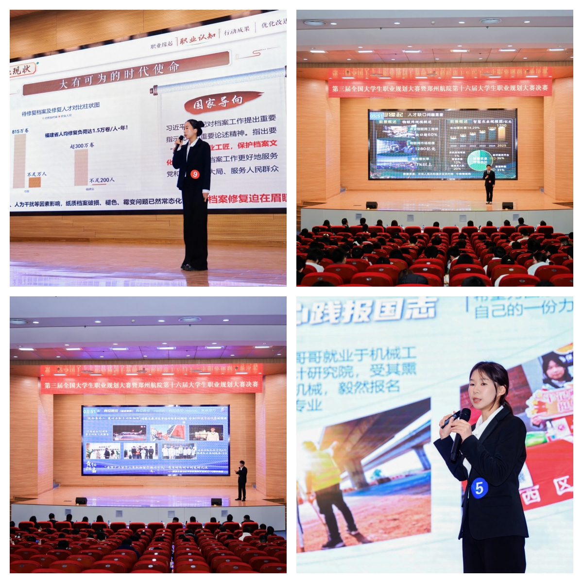 大赛以“筑梦青春志在四方,规划启航职引未来”为主题,设置成长赛道和就业赛道。经学院预赛、学校复赛,最终15名选手晋级总决赛。决赛现场,参赛选手通过职业规划展示、现场答辩等环节,结合职业目标、专业所长与行业趋势,清晰勾勒职业发展蓝图,生动讲述成长奋斗故事。充分体现了郑航学子将个人理想融入国家经济社会发展需要的青春追求和挺膺担当。经过四个多小时的激烈角逐,最终评选出金奖4名、银奖6名、铜奖5名和优秀组织奖5个。